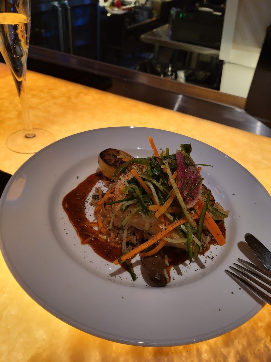 For those looking for something uniquely delectable, don’t miss the Miso Glazed Seabass, served atop crab fried rice and accompanied by shaved Asian vegetables, creating a harmonious blend of flavors that dance on your palate. And for seafood lovers seeking something lighter yet equally satisfying, the Mediterranean Branzino offers a whole roasted fish, embraced by heirloom tomatoes, olives, capers, and a refreshing drizzle of lemon.